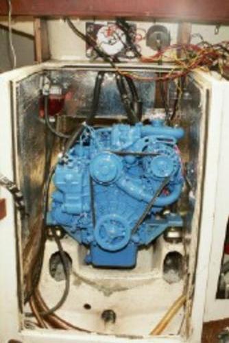 Kone paikoillaan. Vielä tosin vain jalustaan kiinnitettynä, ilman polttoaine-yms letkujen ja johtojen kiinnitystä. Uudet moottoritilan eristeet kiiltelevät puhtauttaan. Kolme senttimetriä paksut Bilteman eristelevyt on kiinnitetty oman tarraliimansa lisäksi kunnon kontaktiliimalla. Liima levitettiin lastalla molempiin pintoihin purkista joka riitti hyvin koko moottoritilan ja porrastaston eristeen liimaamiseen..