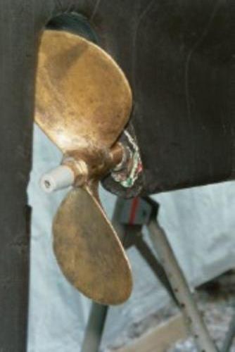 Veneen potkuri piti vaihtaa kun vanhan Volvon kiertosuunta oli eri kuin uuden Sole Dieselin. Uuden potkurin lavat ovat ainakin silmämääräisesti liki kolmanneksen suuremmat kuin vanhassa. Luulin alunperin saavani moottorin kanssa uuden potkurin, mutta koneeseen tulikin käytetty yksilö. Potkurin päähän on kiinnitettynä sinkkianodi ruostumisen välttämiseksi.