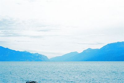 Lago di Garda Näkymä Desenzanosta pohjoiseen. Garda on eteläpäästään aika matalaprofiilista. Tällainen näkyvyys on alueella aika harvinaista, yleensä kuumat päivät nostavat järvestä utua joka rajaa näkyvyyden aika heikoksi niin ettei vuoria näe kunnolla kaukaa.