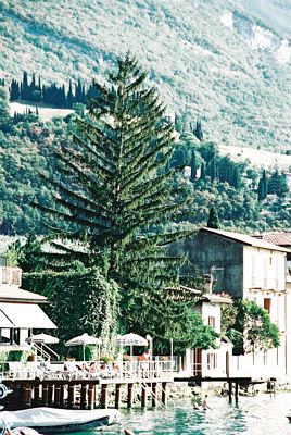 Malcesinen satamassa kasvaa mahtava kuusi (tai ainakin vielä 2002 kasvoi).