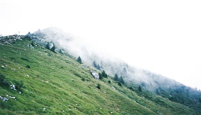 Lago di Garda Monte Baldon vuorijonoa Malcesinen yläpuolella. Pilvet ovat olleet aika usein siellä käydessäni niin alhaalla, että ne tuntuvat sumuisina pisaroina iholla. Ilma saattaa parhaimmillaan olla jopa toistakymmentä astetta viileämpi kuin järven rannalla.