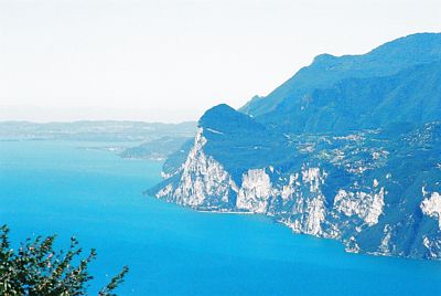 Selkeän sään tuoma upea näkymä Monte Baldolta kohti Gardan eteläpäätä. Aivan kuvan vasemmassa reunassa vastakkaisen rannan kohdalla on Desenzanon kaupunki.