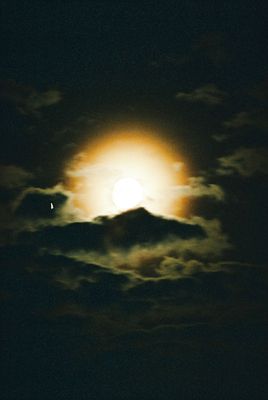 Täysikuu Rivan yllä pilvienlomassa elokuussa 2003.