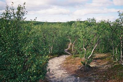 Vuonna 2002 tuli lomailtua ja matkailtua kohtuullisen paljon - ennenkaikkea luonnossa. Reitti Ruktajärvelle Karigasniemen tieltä kulki pitkälti kahden järven välissä olevaa harjua pitkin - tosin välillä ei ympärilleen nähnyt lainkaan tiheän koivikon keskeltä.. Polulta ei voi eksyä sentään.