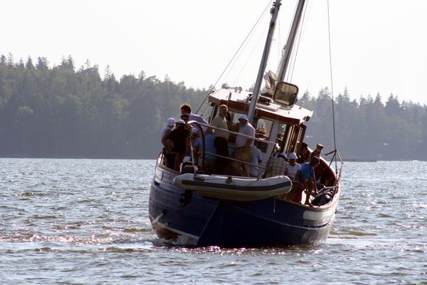 Alus yritti irti moottorilla peruuttamalla, mutta turhaan. Painava troolari oli haudannut kölinsä aika tukevasti Kutusärkkien soraan..
