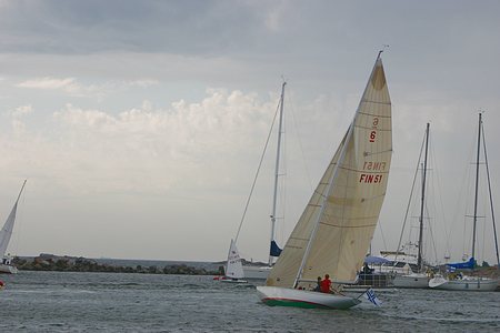 Sy May Be VI näyttää kuutosmaista mallia siitä, mitenpurjeilla lähdetään satamasta.