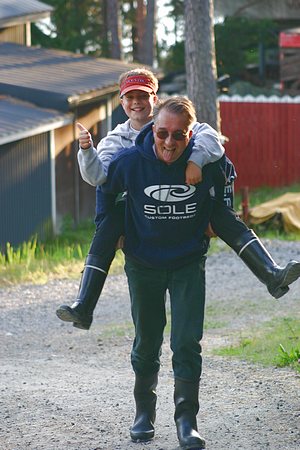 Kesän 2005 purjehduskuvia Matka Rosalaan sujui mallikkaasti. Heti Tulliniemen jälkeen purjeet ylös ja mukavassa sivumyötäisessä alkuun, ja pian takatuulessa. Perillä miehistö jalkautettiin ja suunta oli kohti hiidenkirnuja. Jotkut miehistön jäsenet eivät olisi halunneet kävellä joten toiset joutuivat maissa purjehdusta rankempiin tehtäviin..
