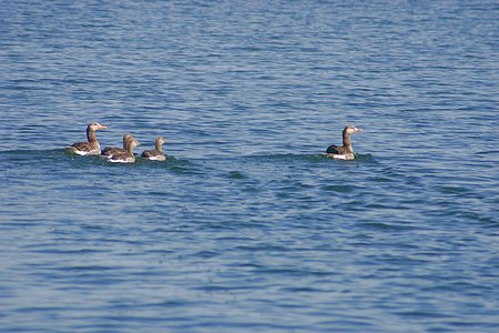 Merihanhia matkalla Aspön saareen. Aika arkoja lintuja.