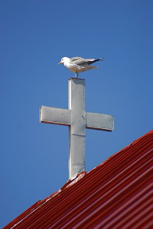Aspön kirkon katonharjan risti toimii hyvänä tähystyspaikkana.