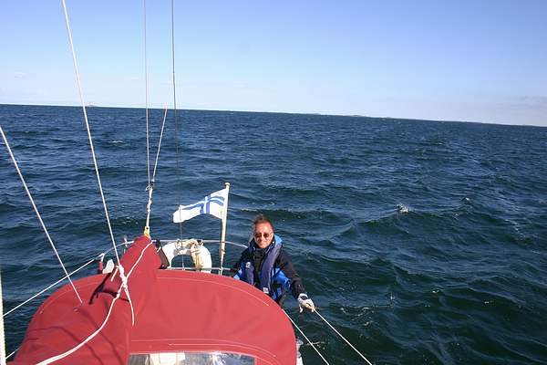 Rullasimme genoan auki myöhemmin tuulen noustua, tässä vaiheessa vielä koneella pääsi nopeammin - tavoitteena siis ehtiä pahimman puhurin alta pois Kökarsfjärdiltä.