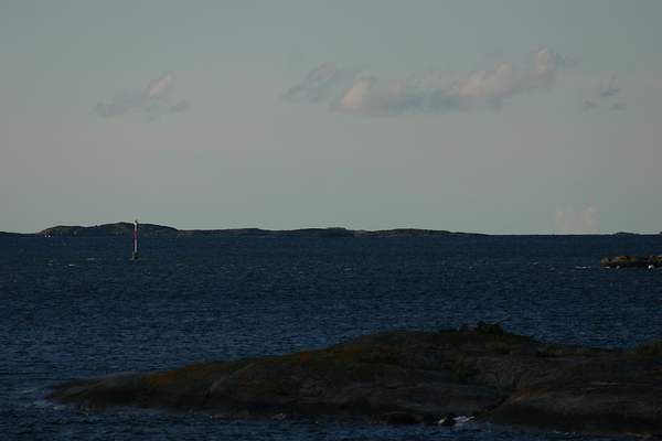 Trunsön itä/eteläpuolella olevan karimerkin kohdalta avautuu luotojen välistä reitti kohti satamaa.