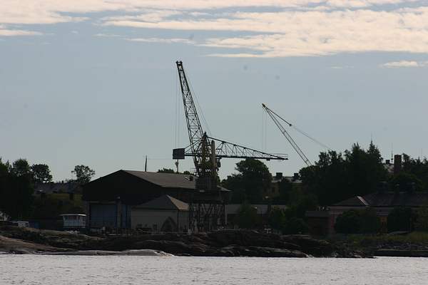 Kesän 2006 purjehduskuvia Suomenlinnan nostureita. Vietin Suomenlinnassa viimeisen yön ennen kotisatamaan lähtöä. Illan kuluessa viereen saapui toinen Ohlson jonka omistajan kanssa turistiin tovi ja tutustuttiin toistemme veneisiin. Ensimmäinen kommentti toiselta oli: "ai tämä on se nettivene". Sillä toisellakin Ohlsonilla on kotisivut ja samoja reissuja takana - vain hieman enemmän ja pidempiä - kuin minulla. Vene tuli Saimaalta.