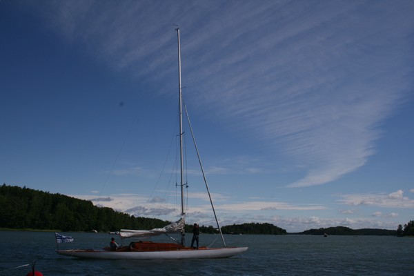 Vastapäiseltä puolelta lähti upea puuvene kohti uutta satamaa.