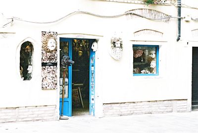 La Serenissima, Venezia.. Itse ostan paitsi solmioita, myös Veneziassa käsin tehtyjä kipsisisä naamioita aina kun siellä käyn. Tässä yksi suosikkikauppojani: Altro Mondo. Naamiot liittyvät venetsialaiseen teatteriperinteeseen, Commedie dell'Arte:en. Siinä on lukuisia eri hahmoja joita kuvataan määrätyn näköisillä naamioilla. Kullakin hahmolla on oma viitekehyksensä käyttäytymisen suhteen jota näyttelijät improvisoivat tarinan edetessä.. Joka keväiset Venetsian karnevaalit tuovat kujille ja kanaalien varsille tuhansia naamioituneita ja vanhoihin, perinteisiin asuihin pukeutuneita paikallisia ja turisteja viettämään makaabereja juhlia.