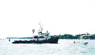 Laguunassa hinaajilla ja luotsiveneillä on töitä..