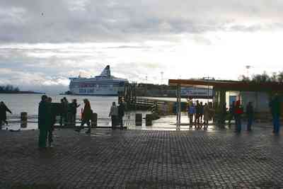 Suomenlinnan lautan laituri oli noussut niin ylös, että lauttavuorot oli peruutettu.