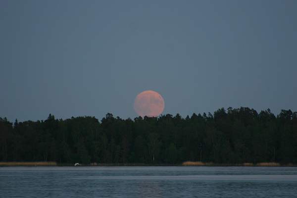 Ilta alkoi vähitellen tummua - täysikuu nousi varovasti vastapäisen saaren takaa kisaa katsomaan.