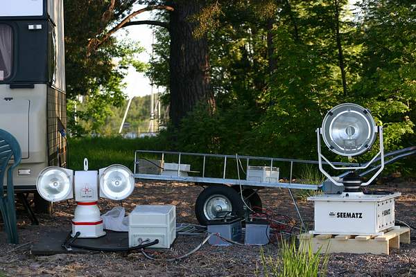 Maalilinjaa valaistiin melkoisilla valonheittimillä yön pimeinä tunteina - tässä jo urakkansa suorittaneina.