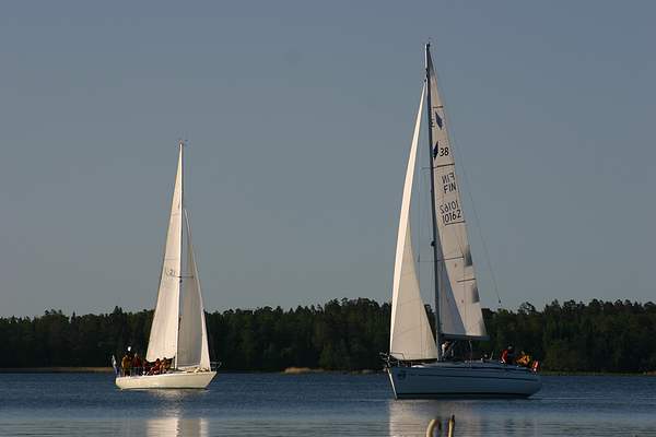 S/y Antti Vitonen vielä kryssimässä kerran ennen maaliin saapumista, s/y Gabriel seuraa taustalla.