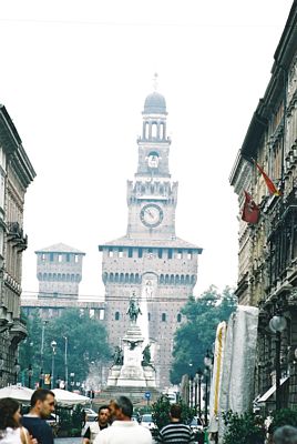 Milano Castello Sforzesco, Milanon vanhan hallitsijasuvun suuri linna Viale Danten toisessa päässä. V.Danten toinen pää tuo Gallerian kulmalle. Viale Dantella on lukuisia hyviä kahviloita. Jos eksyt sinne, käy kassan kautta ja pyydä: un cappuccino e una bombollone.. Bombollone on vanilijakastikkeella täytetty munkki joka on päällystetty tomusokerilla. Takaan makunautinnon. Muuallakin kuin Milanossa.