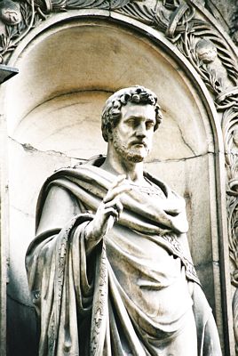 Milano Viale Dantella sijaitsee melko lähellä Gallerian päätä katettu torintapainen jolla tosin koskaan täällä käydessäni ole nähnyt ensimmäistäkään myyntikojua. Vastapäätä tätä rakennusta on kuvassa oleva reliefi, kuin vahtimassa ja ojentamassa kauppiaita tekemään vilpitöntä kauppaa.