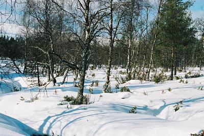 Vuonna 2003 keväällä lunta oli niin vähän, että varvut ja kortteetkin näkyivät hangen läpi.