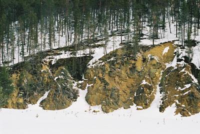 Mäen reunaa kulmakurua kohti hiihdellessä Lutto-joen päällä ja rannoilla.
