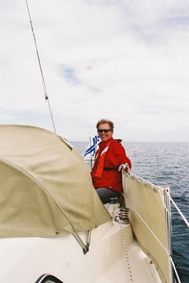 Kesän 2004 purjehduskuvia Pitäähän kapteenistakin ainakin yksi purjehduskuva löytyä.. leppoisaa menoa. Käytännössä aika paljon kryssimistä johon miehistö ei suuremmin tällä etapilla osallistunut - melkein kuin yksinpurjehdusta. Hyvää treeniä tulevia vuosia varten.