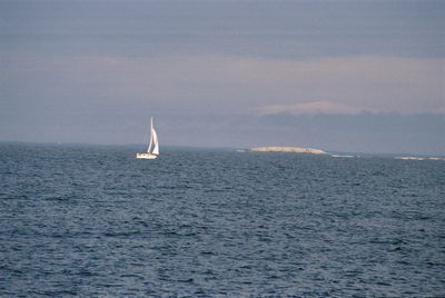 Kesän 2004 purjehduskuvia Porkkalan selkä aamulla seitsemän aikaan.. aika tyhjää oli. Yksinäinen purjevene kulki rannikkoreittiä kohti Inkoota. Meri ei ollut kovin kuoppainen, eikä tuulikaan näyttänyt pahalle. Silvan kannettavan tuulimittarin mukaan rannalla oli n. 7 m/s kaakkoistuulta.