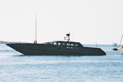 Kesän 2004 purjehduskuvia Hangon satamassa ollessani, huoltoasemalla vieraili pariinkin otteeseen tämä tummanpuhuva menijä. Joku laiturilla olijoista tiesi kertoa huippunopeudeksi 60 kilometriä.. Ja tätäkin nopeampi vastaava on kuulemma rakennettu.. Katsoin kellosta aamulla, kun venettä tankattiin.. parikymmentä minuuttia tuohon taidettiin lorottaa menovettä..