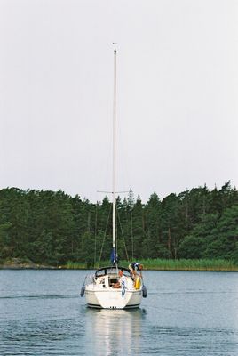 Kesän 2004 purjehduskuvia Emilie takaapäin. Tämä näky tuli tutuksi aina kun oltiin yhtäaikaa purjehtimassa. Ohlsson jäi Maxi Fenixille oitis tuulella kuin tuulella (moottorilla ei kokeiltu, mutta silloin olisi tarina voinut olla toinen).
