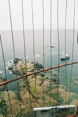 Kesän 2004 purjehduskuvia Tornissa pyöriessäni saapui Hangosta toinenkin turistialus, kuvasta näkee hyvin kuinka haastelliset nuo saaren rannat ovat.. Vastaanottajat ovat kalliolla veneen keulan edessä..