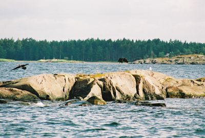 Kesän 2004 purjehduskuvia Takaisin kohti itää. Merimetsoja kalliolla Hangosta Tammisaarta kohti kulkevan rannikkoreitin varrella. Singahtivat aika arkoina jo lentoon - eivät viihdy kovin lähellä ihmistä.