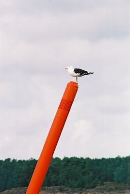Linja pitää. Voiko olettaa, että merilokki painaa niin paljon, että väylämerkki painuu vinoon?