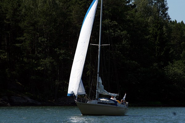 Kesän 2008 purjehduskuvia Löysällä tuulella pääsi puolenpäivän jälkeen jo purjeillakin - meillä peltifokka veti koko matkan Stenskäriltä Korpoströmiin. Ja yski aika pahasti matkalla. Koneen kierrokset laskivat jopa 500 kierrosta yllättäen ja taas palasivat normaaliksi hetken kuluttua. Tilannetta hermoilin liki koko kesän ja syksyllä tankki lähtikin pesuun. ei ihme, että kone yski, tankin pohjalla oli sakkaa kuin Suomenlahdessa mutaa.