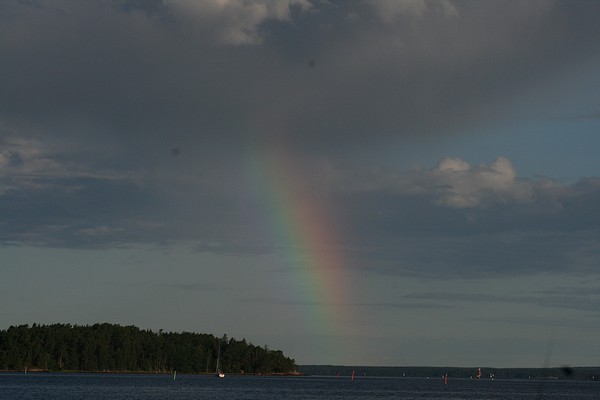 Degerbystä lähdön aamulla etelässä näkyi sateenkaari, mutta sade ei tullut kohdalle.