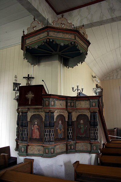 Hiittisten kirkon saarnatuoli.
