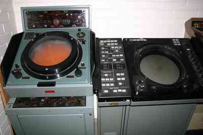 Opiston käytävillä oli vanhoja tutkien näyttöjä useampikin.
